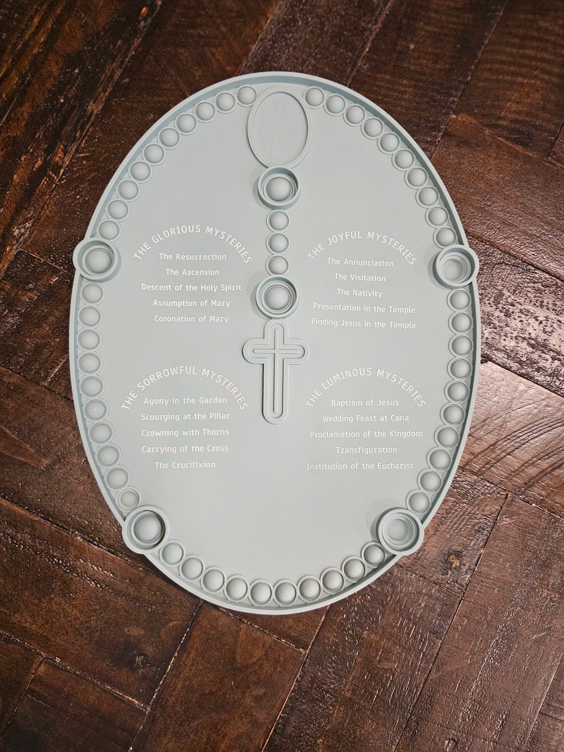 Pray the Rosary with Gather and Pray’s exclusive Rosary Popper! You’ll never lose your spot while praying the Rosary again. Simply press a bubble down and immediately see your place. The mysteries of the Rosary are printed directly on the popper making for quick and easy reference. These make a wonderful gift for children and adults alike. The perfect addition to your Mass bag, Rosary stash, or prayer table.