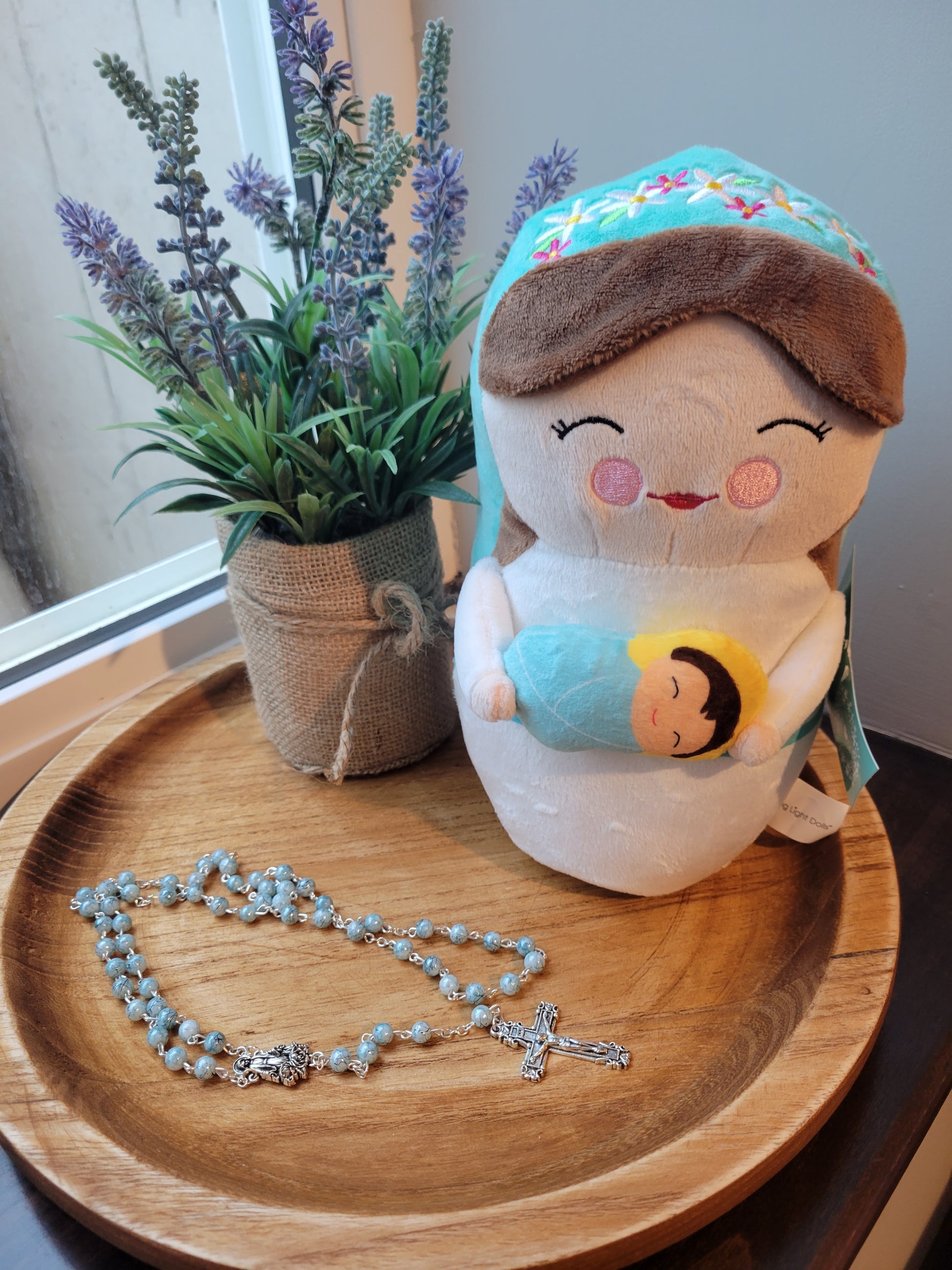 The very first Shining Light Dolls Plush has arrived and she is even cuter than we imagined! Handcrafted from the softest plush we could find, and standing at 10 inches tall this Mother Mary plush is sure to become your little one's favorite companion!