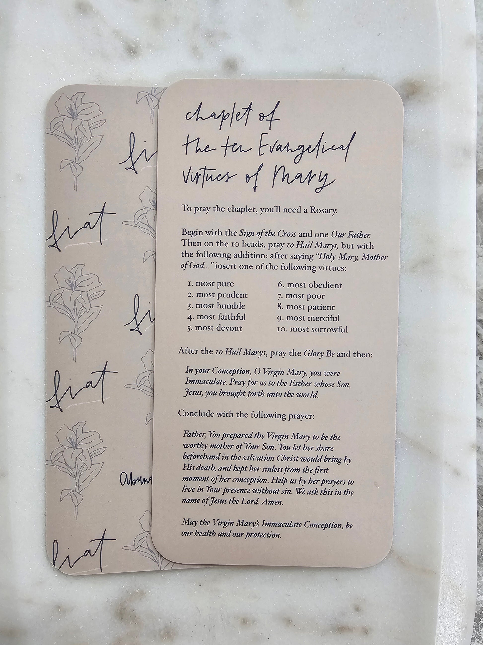 Chaplet of the Ten Evangelical Virtues of Mary Prayer Card