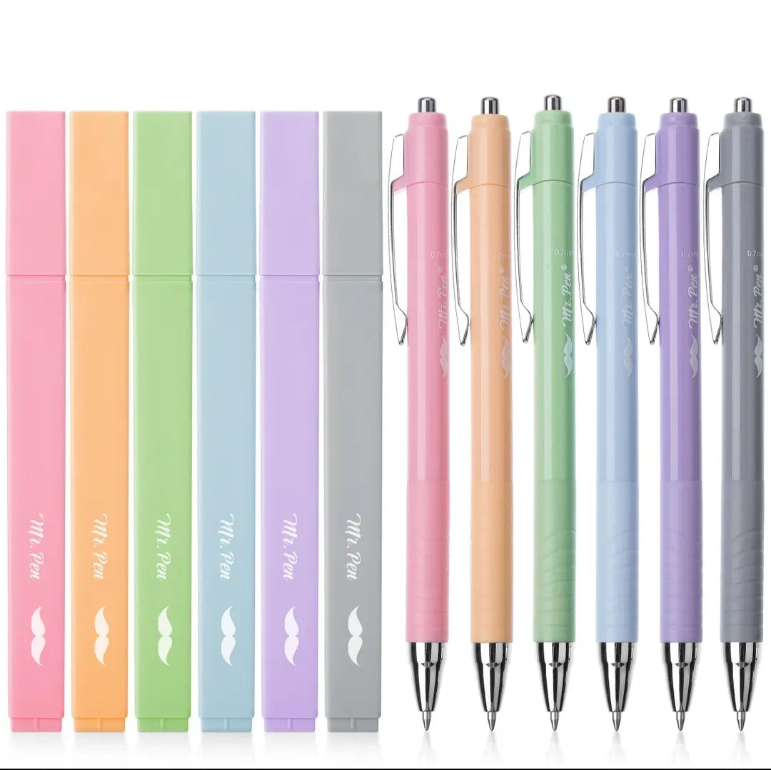 Mr. Pen highlighter and pen set includes 12 pieces, offering a perfect combination of vibrant highlighters and smooth-writing pens in matching pastel colors.