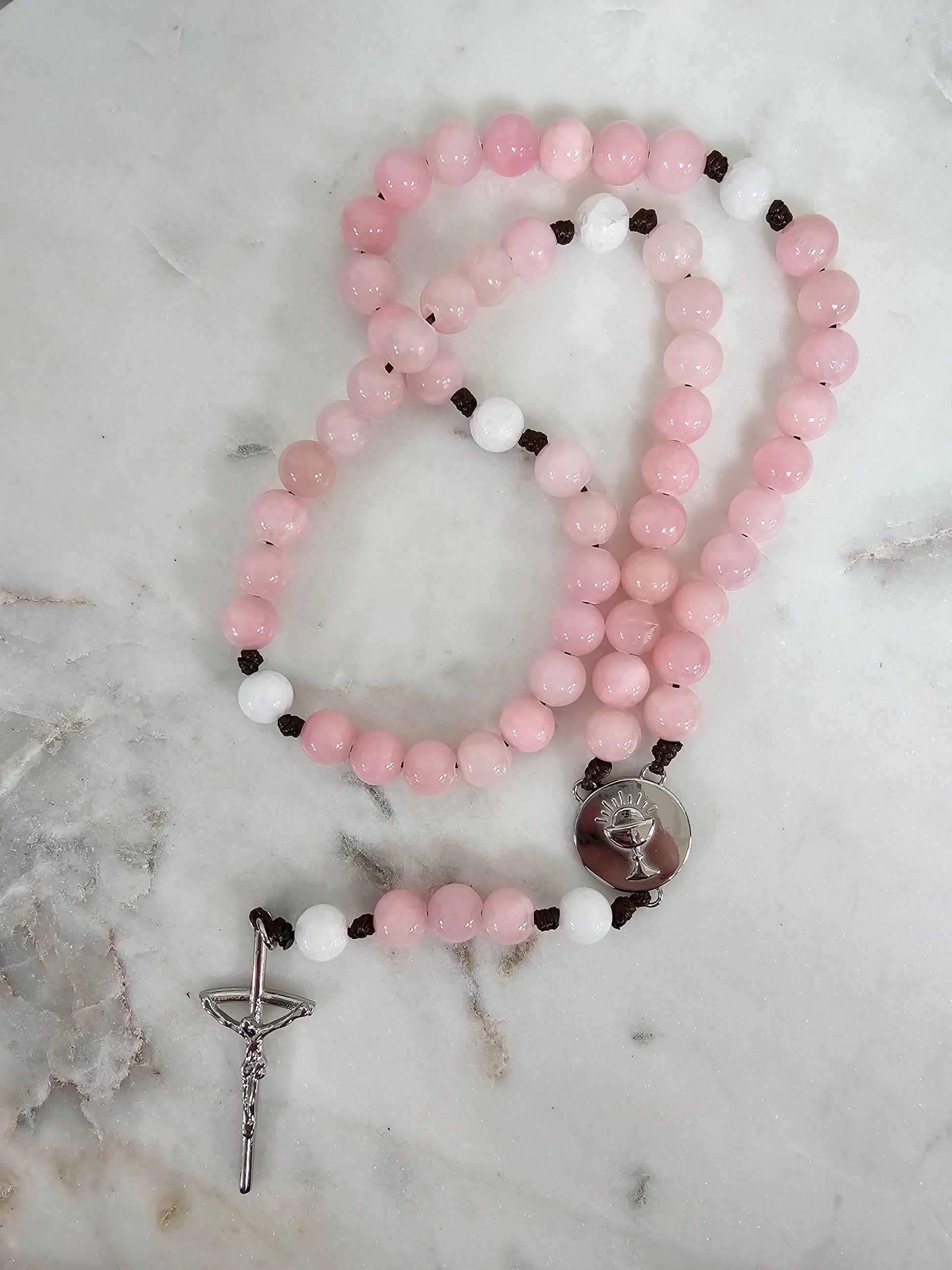 Our First Communion rosaries are perfect for the boys and girls receiving the sacrament of First Communion. Each rosary has a charm that symbolizes the sacrament.