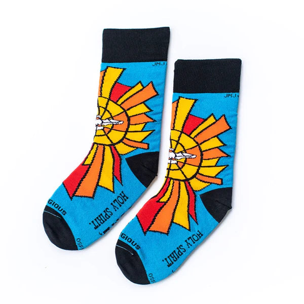 Inspired by the stained glass window at the back of St. Peter’s Basilica in Vatican City, these socks will remind you of the heart of our Church, the Holy Trinity, and the boldness we can receive to share Jesus in our daily lives!