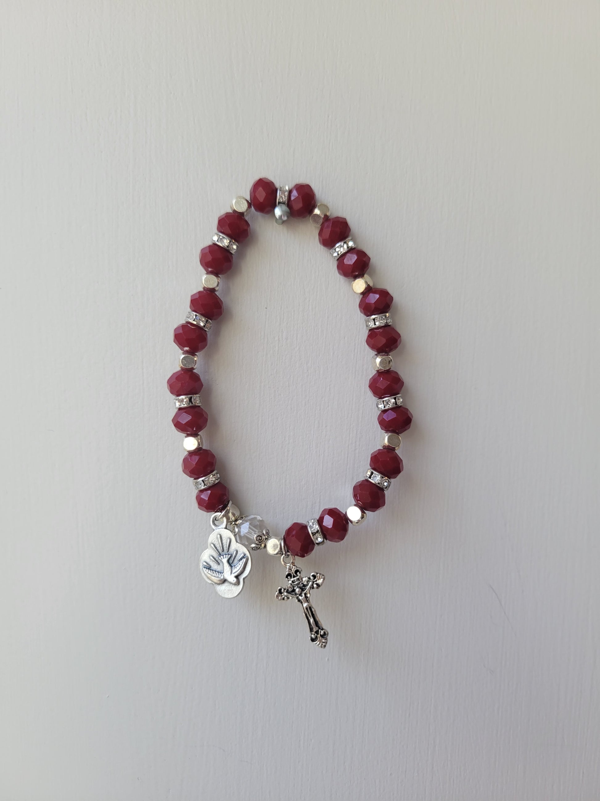 Red Matt crystal beads with silver ox Holy Spirit and Crucifix