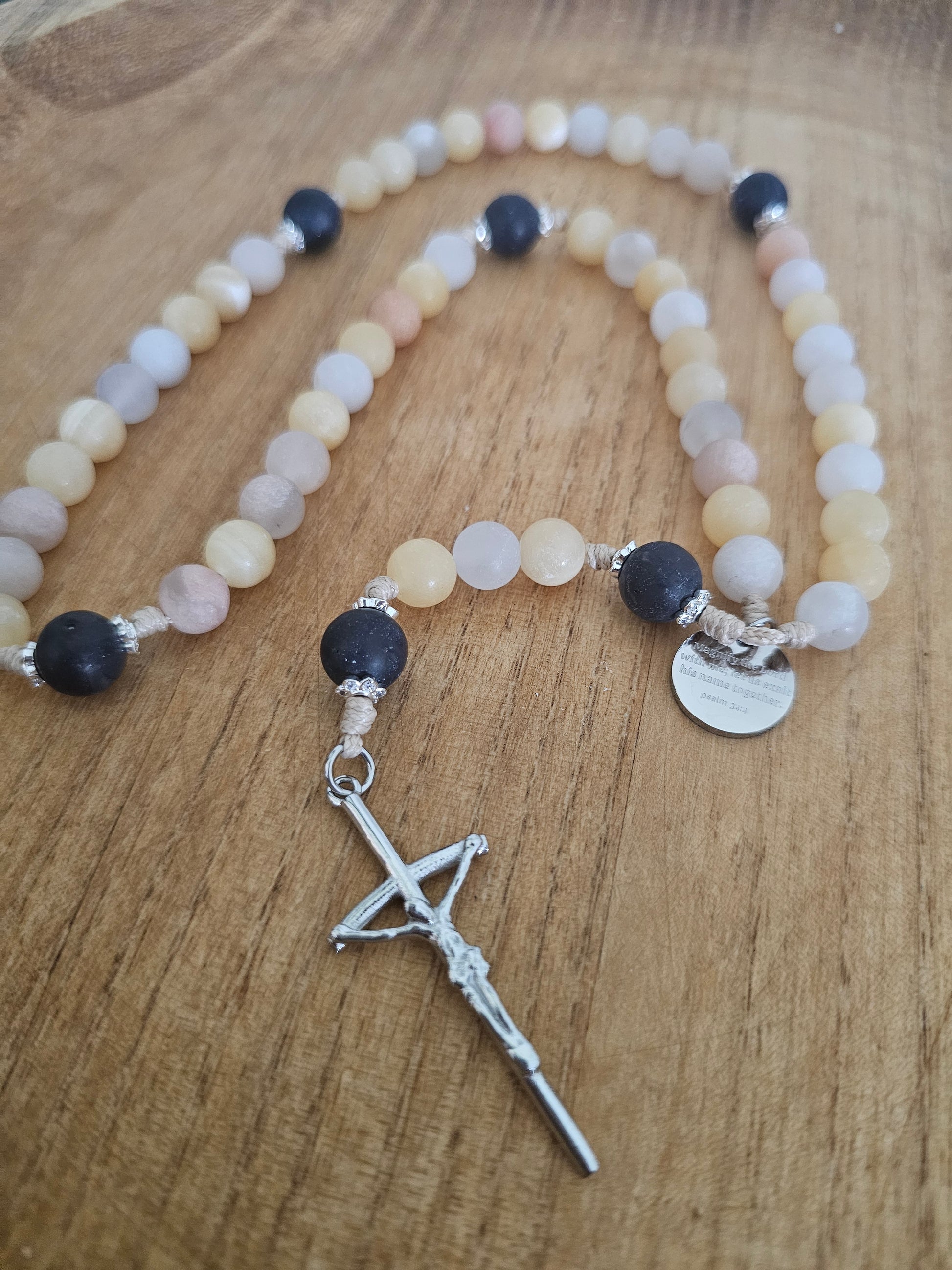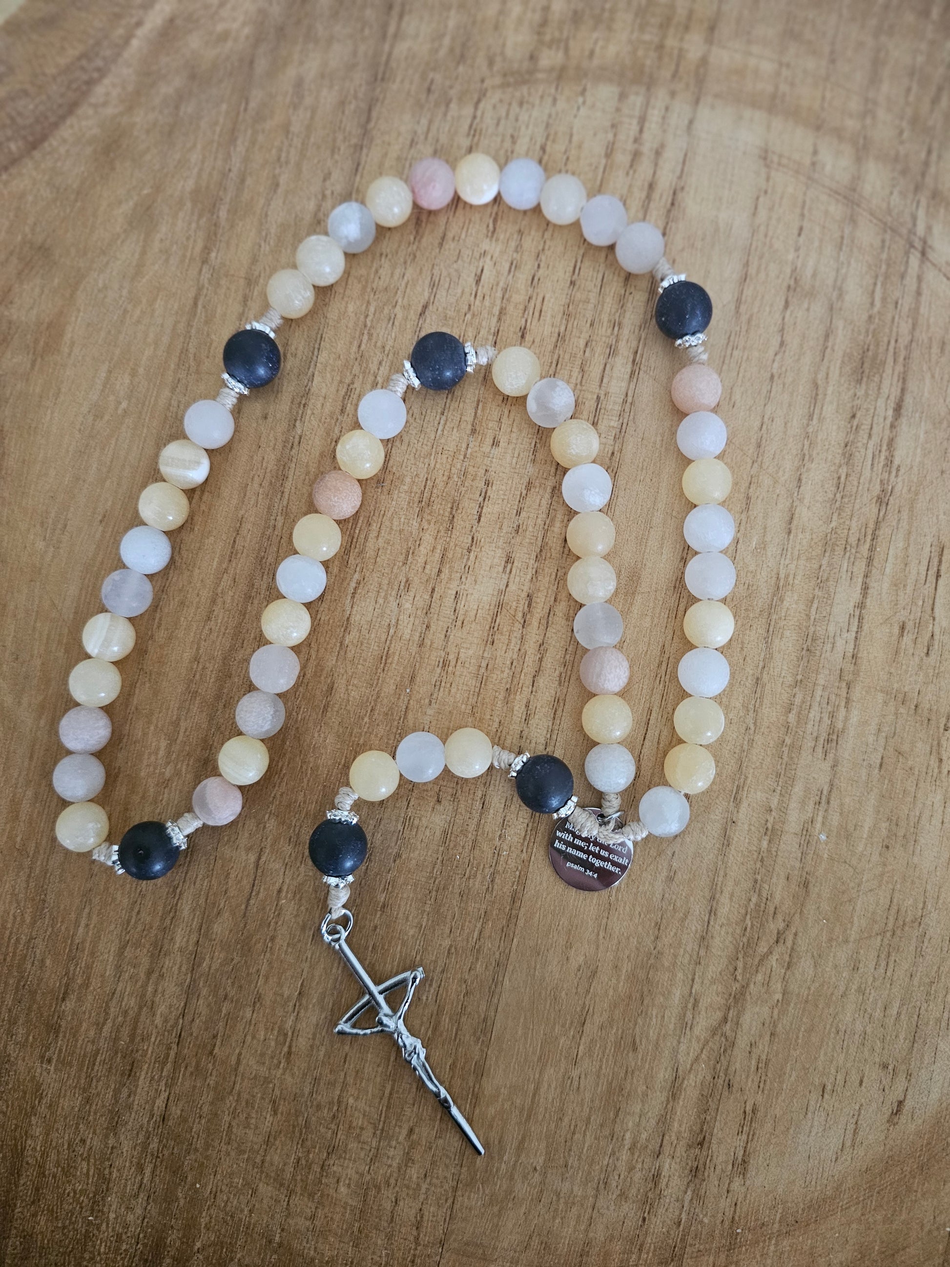 Every rosary looks slightly different due to the nature of the gemstone beads.