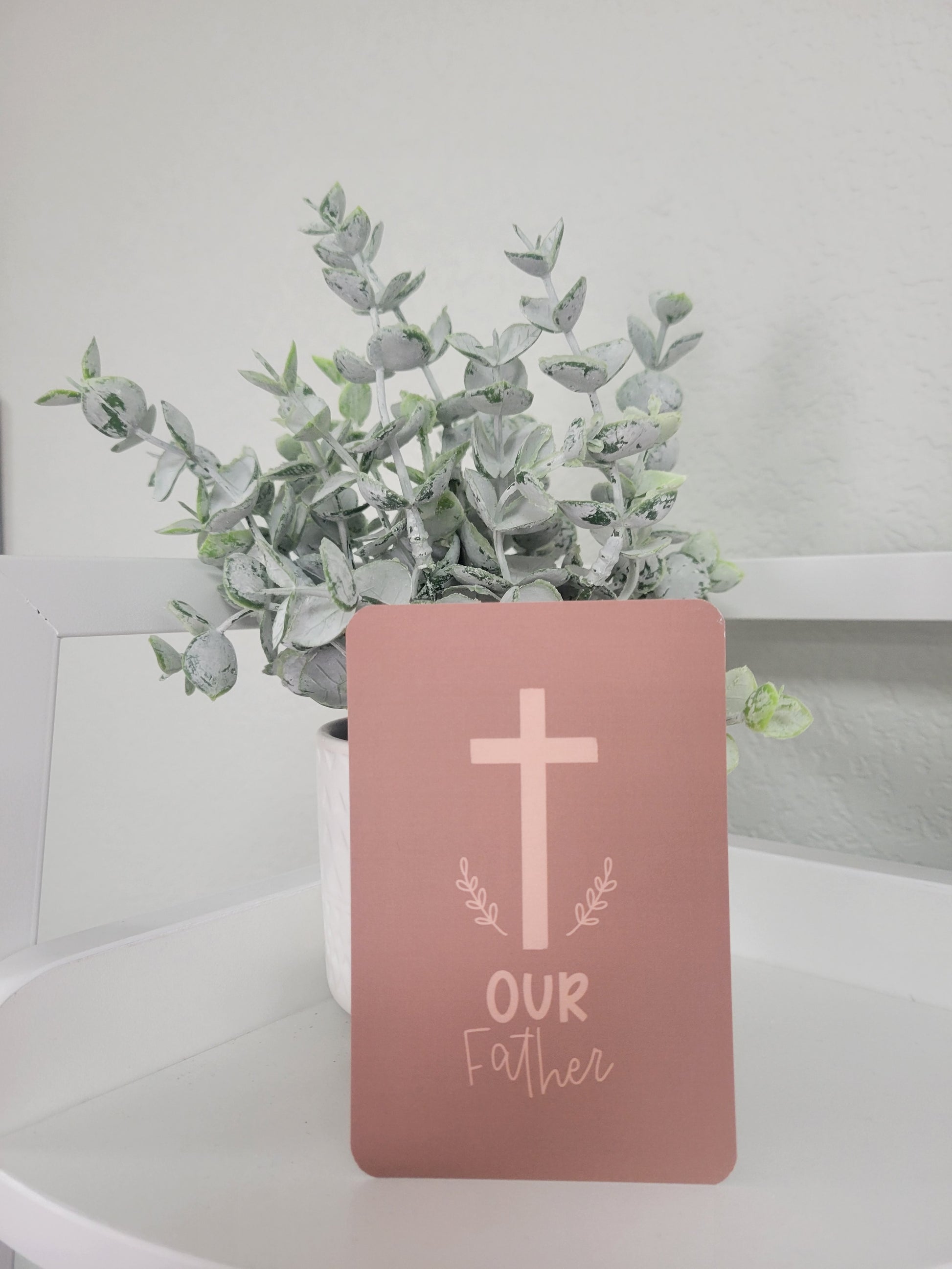 Prayer card is professionally printed with a soft touch coating, extra durable for those little hands. The simple font that’s great for children who are starting to read and/or memorize prayers.