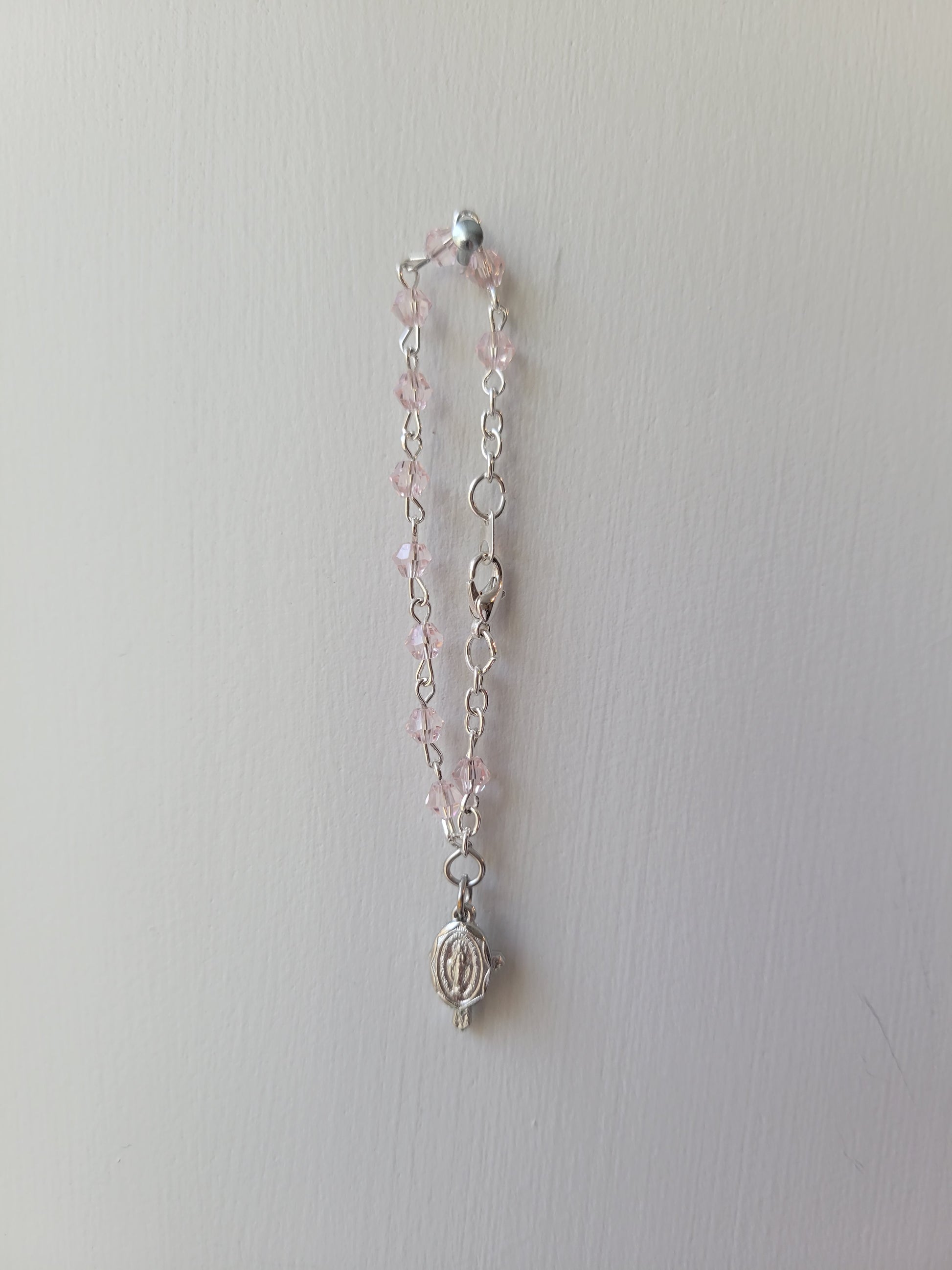 4mm Tincut Crystal Beads Rhodium Plated Crucifix and Miraculous Medal