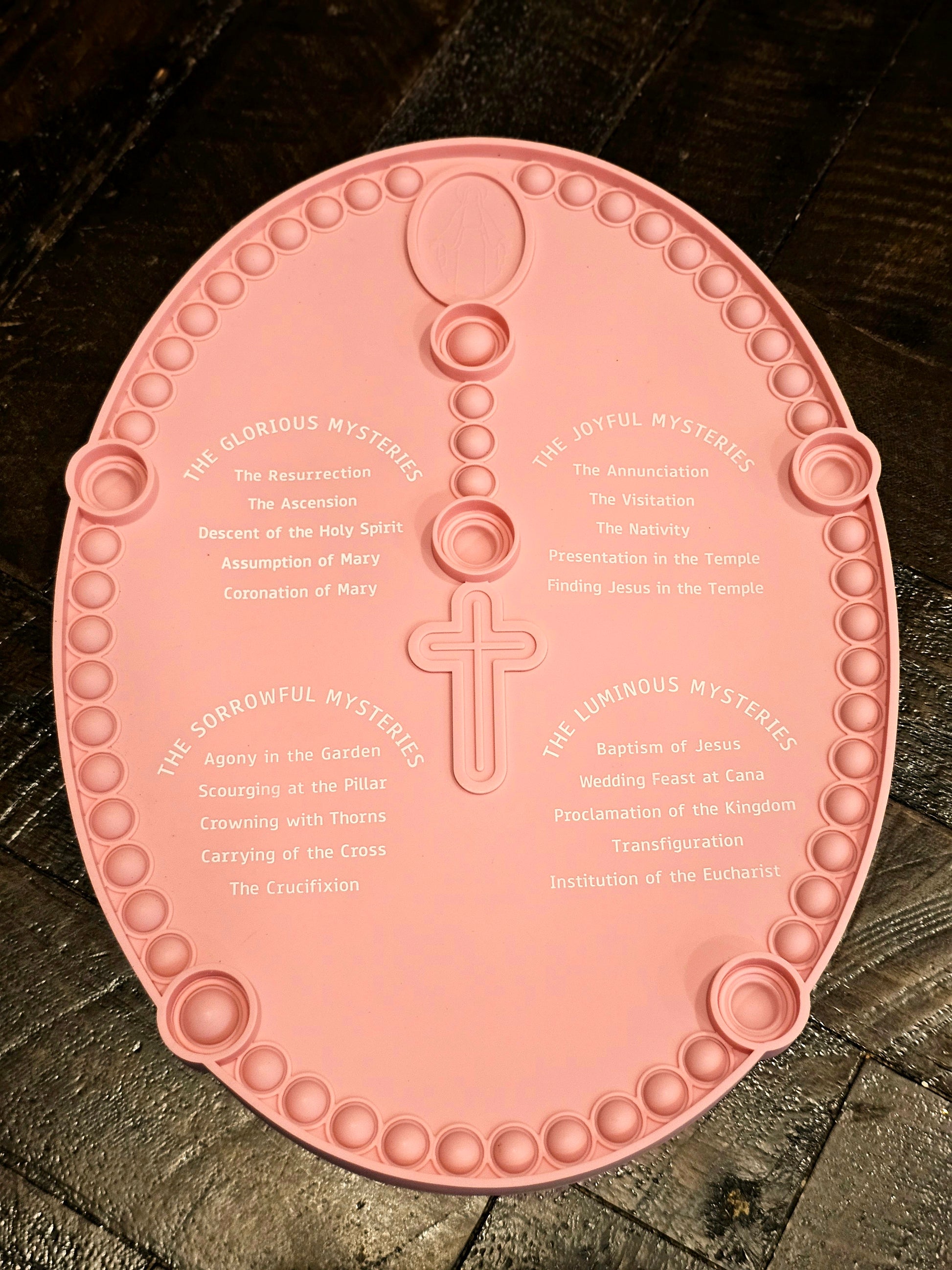 Pray the Rosary with Gather and Pray’s exclusive Rosary Popper! You’ll never lose your spot while praying the Rosary again. Simply press a bubble down and immediately see your place. The mysteries of the Rosary are printed directly on the popper making for quick and easy reference. These make a wonderful gift for children and adults alike. The perfect addition to your Mass bag, Rosary stash, or prayer table.