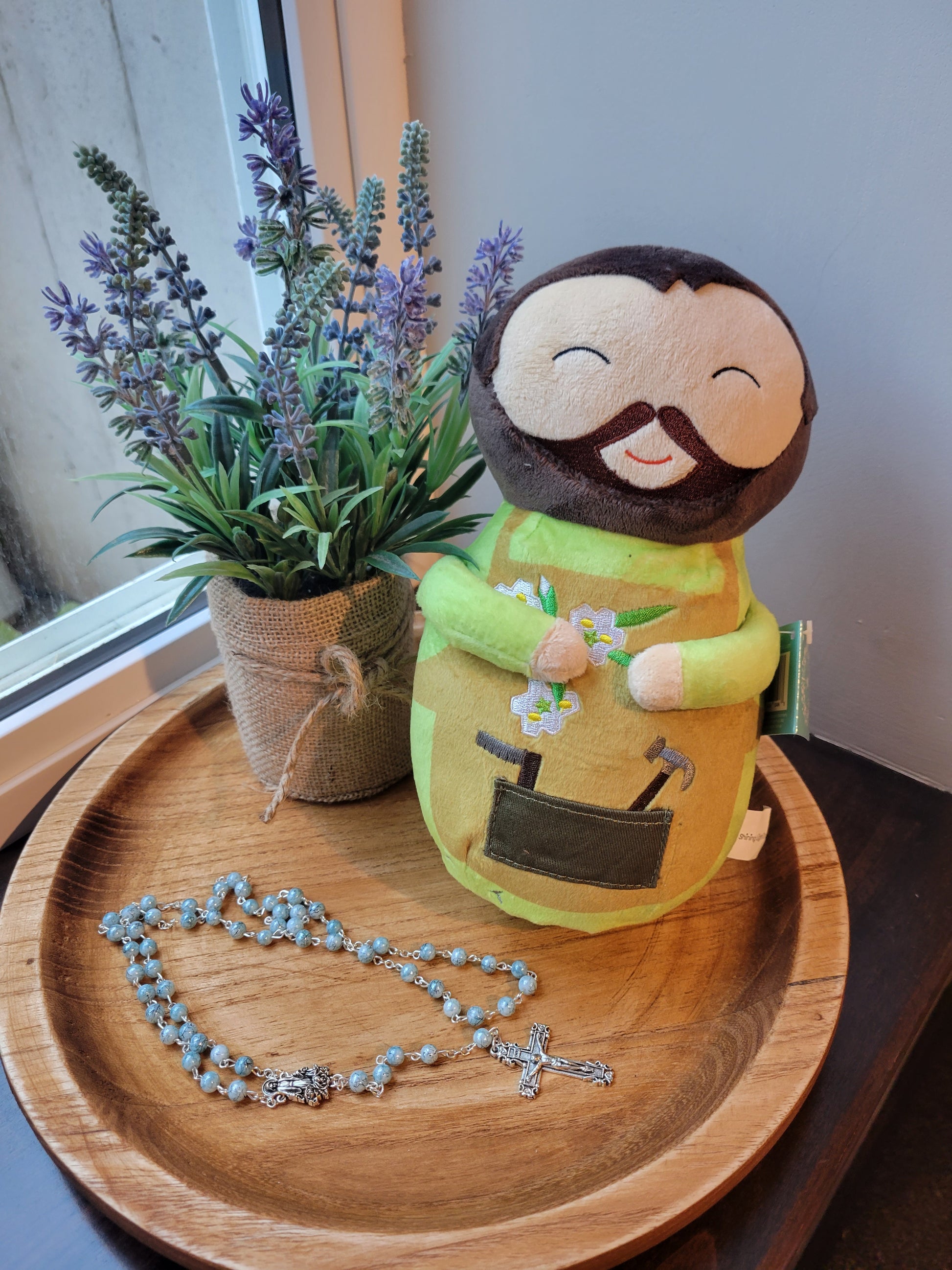 Handcrafted from the softest plush, and standing at 10 inches tall this St. Joseph plush is sure to become your little one's favorite companion!